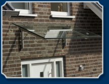 Dieses Vordach wurde mit einer mind. 160 kg schweren Glasscheibe an einer vorgehängten Klinkerfassade montiert - mit Gerüst und 4 starken Männern