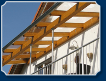 Hier konnten wir die Überdachung direkt auf das Geländer aufsetzen, dass unser Schlosser nach Absprache mit dem Zimmermann verlängert hat