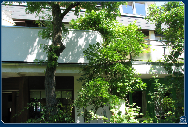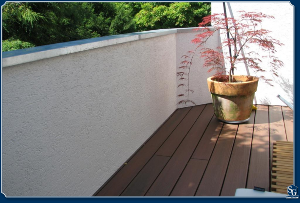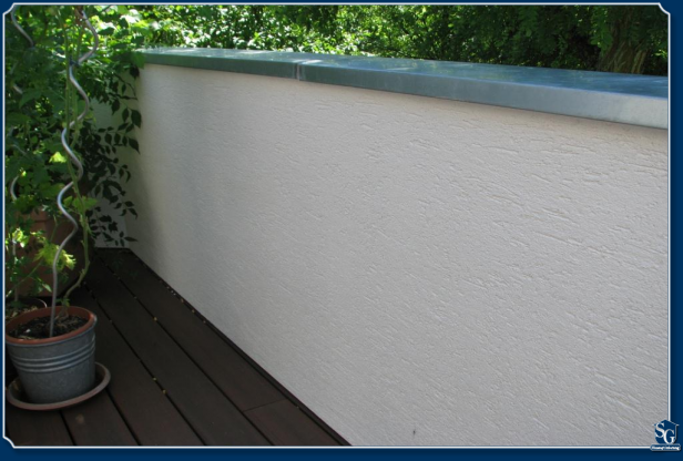 Aus einer Leichtbauweise entsteht eine richtiger - durch eine massiv wirkende Brüstung - geschlossener Balkon