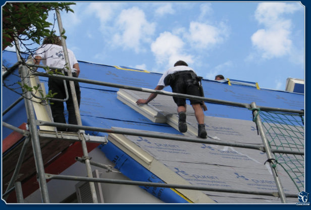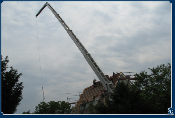 das Material konnte mit Hilfe unseres Krans auf das Dach gebracht werden