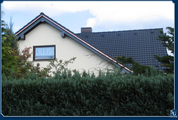 Das Kupferblech haben wir hier auf Kundenwunsch gegen die Verwitterung (Patina) geschützt haben