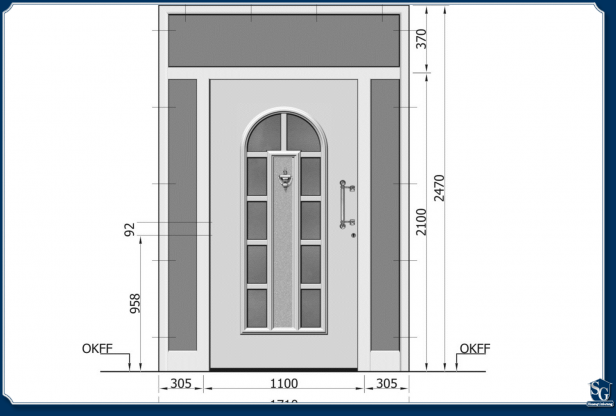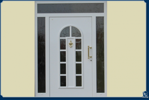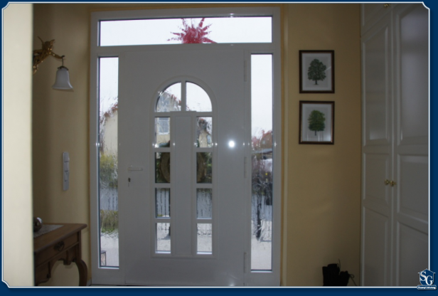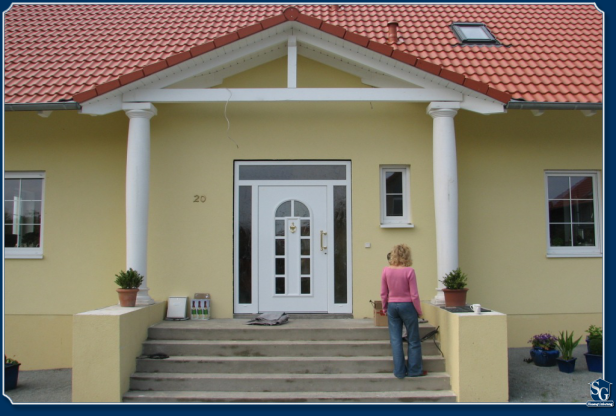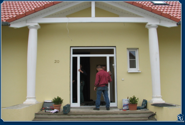 Der Einbau des Rahmens mit 2 Seitenteilen und Oberlicht