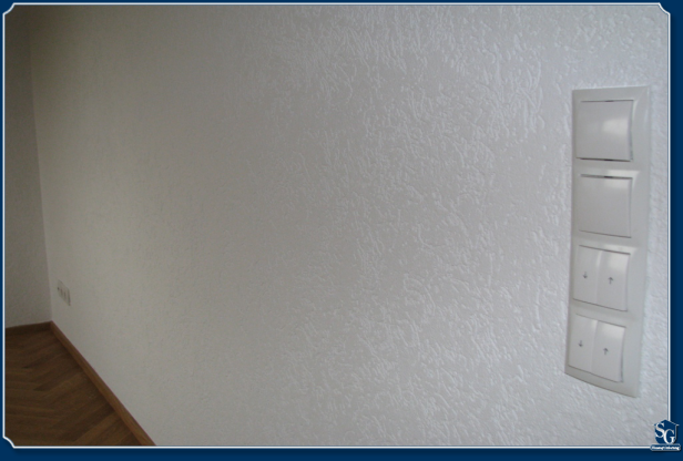 Innenputz als Münchner Rauputz. Elektrik neu mit Schalterprogramm von Berker. Rollläden jetzt bedienbar von der Tür.