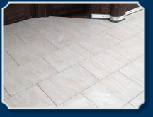 Keramikplatten in beige im Mauerverband verlegt