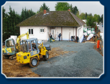 Tag 9: Der Kellerbereich wird verfüllt, der Untergrund für's Pflaster planiert