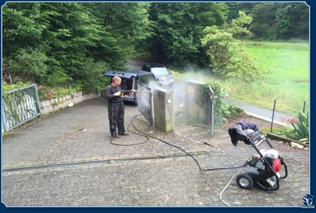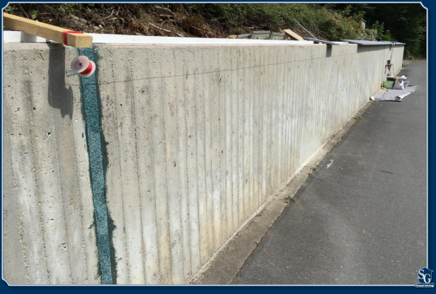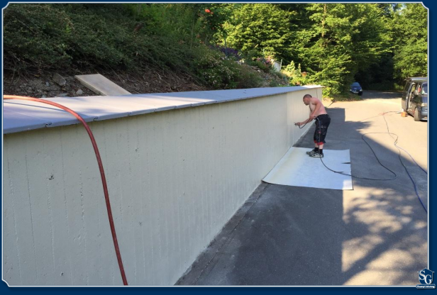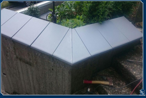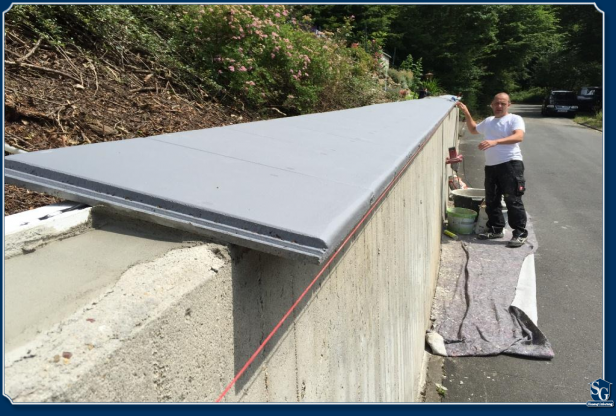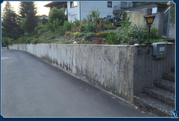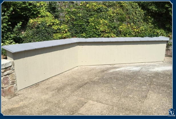 Fertig! Die Mauer ist von oben geschützt. Das Wasser läuft nun nicht mehr in die Mauer und durch die jetzige Abtropfkante auch nicht mehr ständig an die Mauer