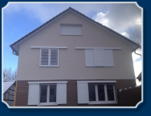 Die Halterungen für die Fensterläden wurden in die Dämmung gleich entkoppelt eingebaut