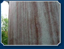 Rotalgen wie diese finden wir häufig vor, besonders da, wo der mineralische Putz nicht durch einen schützenden Anstrich behandelt wurde