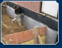 Wenn keine Perimeterdämmung gewünscht ist, wird die Erde gegen eine doppelseitig kaschierte Vertikaldrainage aufgefüllt und lageweise verdichtet
