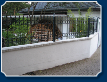 Die Mauer wurde verputzt und mit einer Abdeckung versehen - am Ende wurde der Zaun montiert